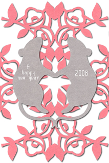 紋切り型の唐草と椿に、私が勝手に作ったねずみを合わせてみました。